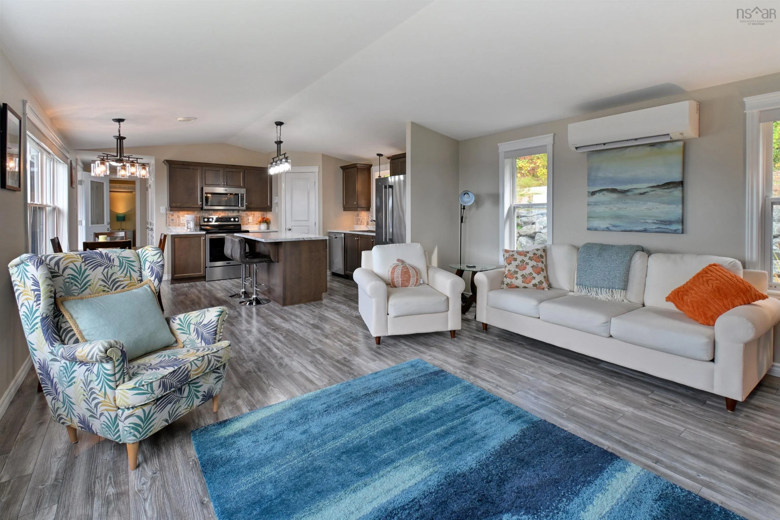 This move-in ready home in Irishvale Cape Breton is ready to welcome a new family. This captivating property perched on a scenic hill just east of the Irish Cove Lookout, offers panoramic views of the Bras d’Or Lake from nearly every room and combines peaceful seclusion with convenient access – just 30 minutes to St. Peter’s and 35 minutes to Sydney’s shops and services. The landscaped grounds are a showpiece, with mature trees, vibrant flowers, and a paved circular driveway offering smooth access whether you’re arriving from Sydney or St. Peter’s. Step inside through the newly added indoor porch and be greeted by a spacious open-concept living area, flooded with natural light from large windows that frame the stunning lake vistas. The kitchen is both modern and inviting, featuring sleek appliances and a stylish tiled backsplash. One of the standout features of the home is the three-season SunSpace sunroom – perfect for relaxing and soaking in the beauty year-round – along with a deck adorned with glass railings for uninterrupted views. The primary bedroom includes a luxurious ensuite with double vanities. Two additional bedrooms offer flexibility for guests, a home office, or nursery. A second full bathroom and a separate laundry room complete the main level.The oversized garage accommodates two vehicles and includes space for a workshop or gym. There’s even heat in the garage – ideal for year-round use. This is an exceptional location for outdoor recreation. Winter fun awaits just 20 minutes away at the Ben Eoin Ski Club, while summer brings golfing at The Lakes Golf Club and boating from the Ben Eoin Marina. Enjoy kayaking, beach walks, or birdwatching right from your doorstep, with frequent eagle sightings and direct access to the lake. The home features four heat pumps, a generator with GenerLink, and is offered fully furnished for a seamless move-in experience. Whether you’re seeking a full-time residence or a year-round retreat, this home delivers.