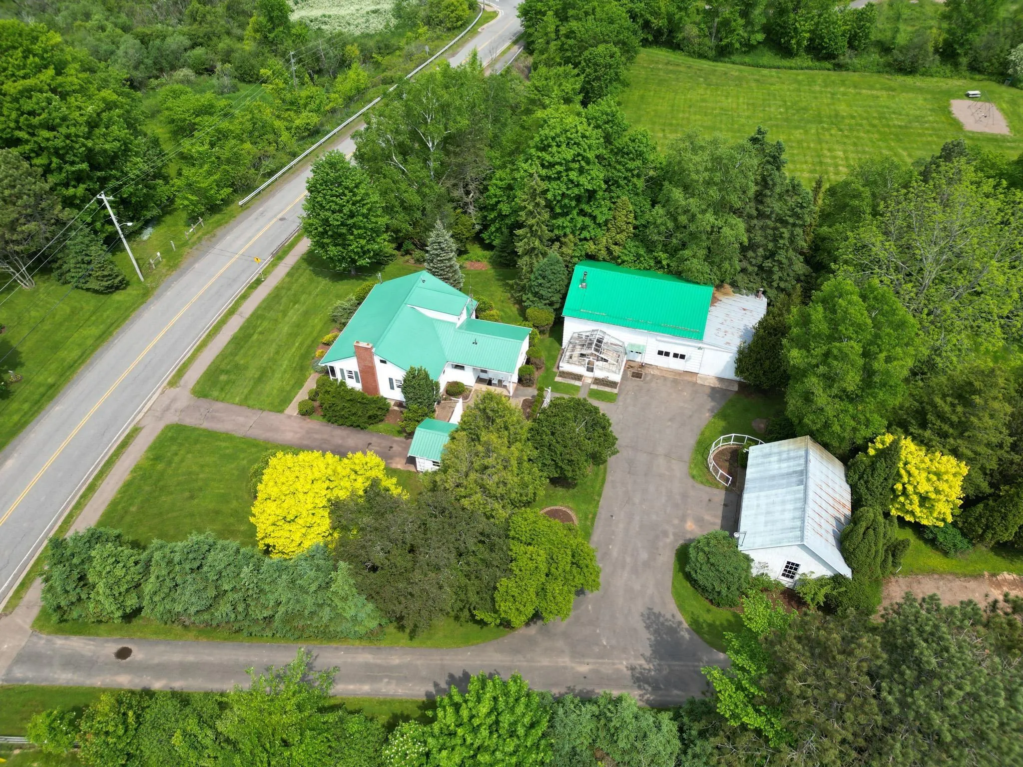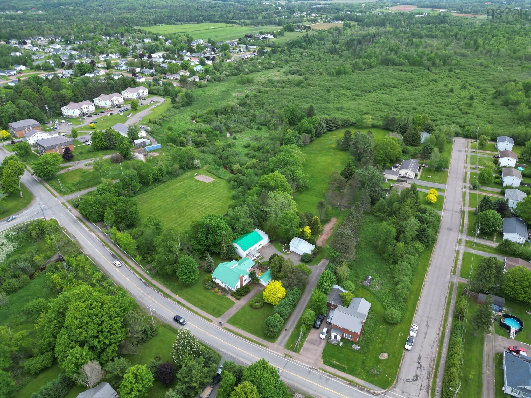 What a Rare Opportunity Awaits You, be the first to view this amazing 1.38 acre property located in the Village of Bible Hill. Location, curb appeal & endless opportunities await the new home owner of this beautifully positioned property. Close to all Village & Town amenities, schools & highway access, makes this property ideal for entrepreneurs, or business owners who need storage space for equipment or supplies, or with the 1.38 acre parcel & outbuildings you could have a small hobby farm, hens, goats etc. This picturesque property offers a single car detached garage (12×20), a large 2 storey-3 bay workshop/storage building (30×57) plus a large barn/storage building (31.6×21). All buildings are currently being used for storage & have steel roofs. A large backyard offers privacy amongst the mature trees & shrubs & creates an ideal spot for children to play. 2 paved driveways, one of which gives you access to the backyard that is large enough to house another building if you found you needed or wanted one. The house has a wood/oil furnace, newer oil tank (2021) & a hot water tank installed in 2023. Property is zoned R-2.