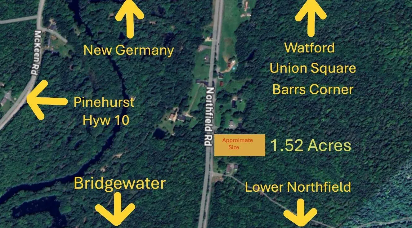 What a fantastic neighbourhood! Upper Northfield, is a sought after and centrally located. Minutes from Hwy 10, and the Quaint village of New Germany. All other amenities can be found in Bridgewater, 20 min away. This property gently slopes up away from the road, and there is an old trail running up the middle. You couldn’t ask for a better place to build your dream home.