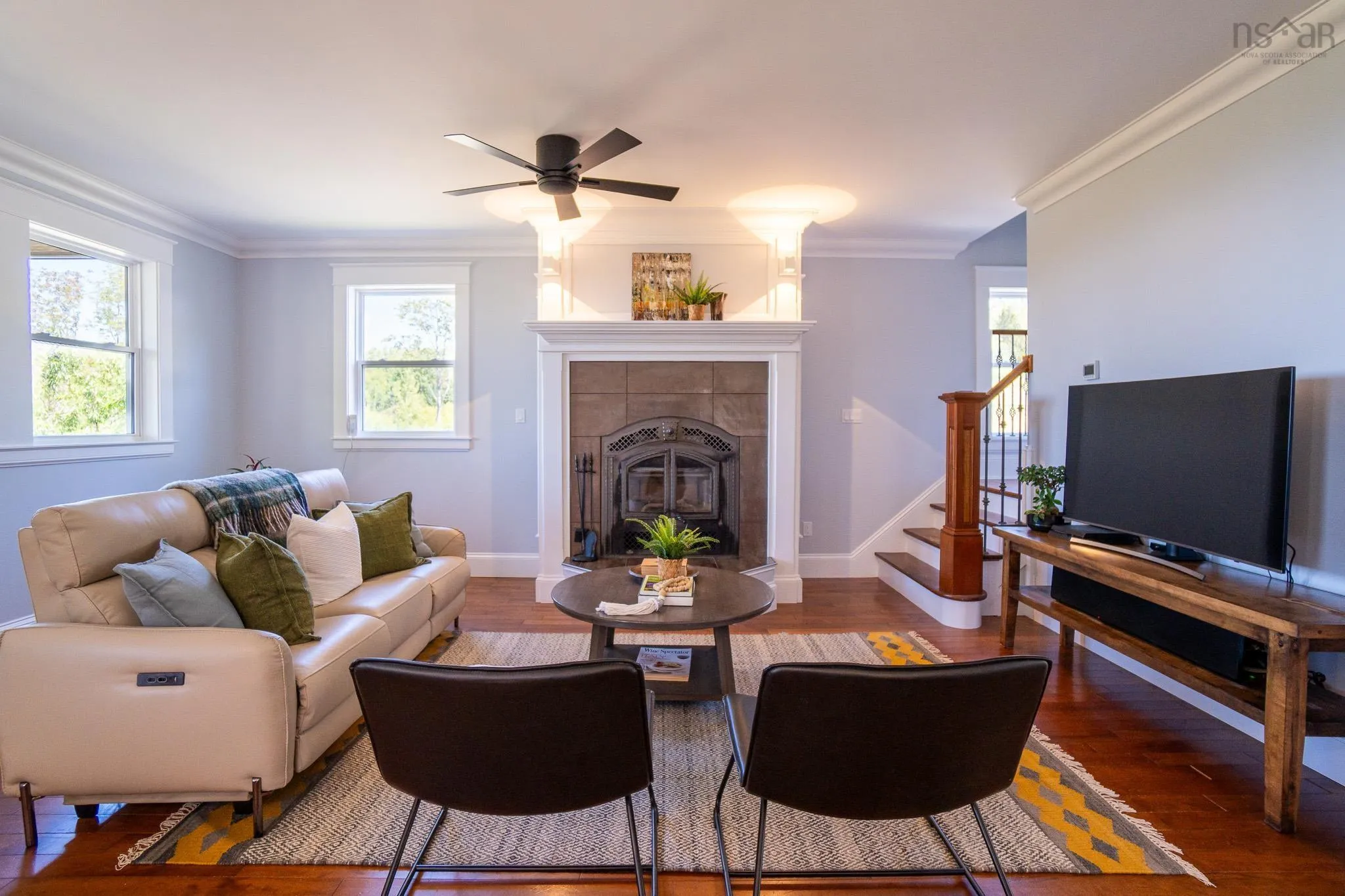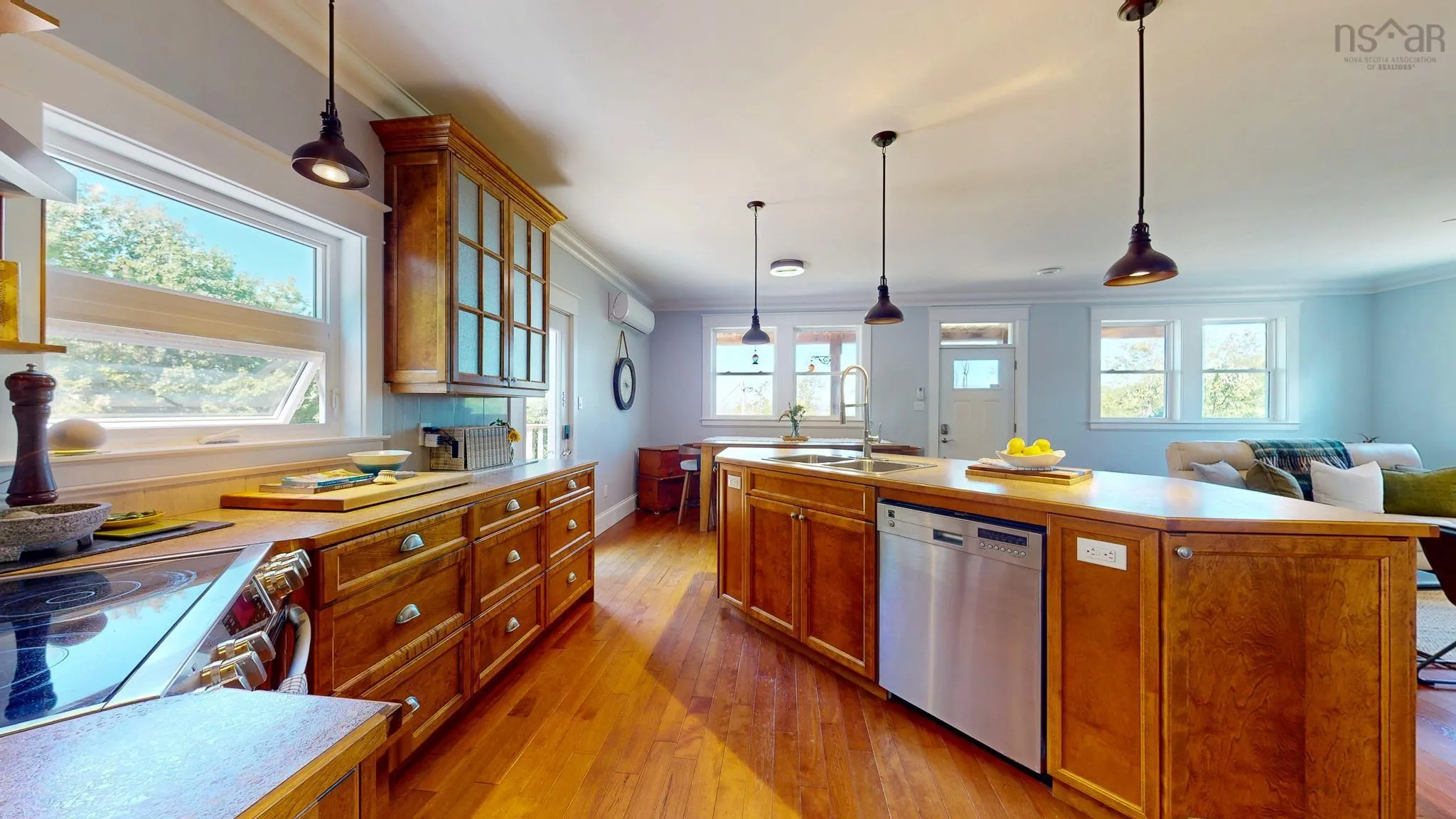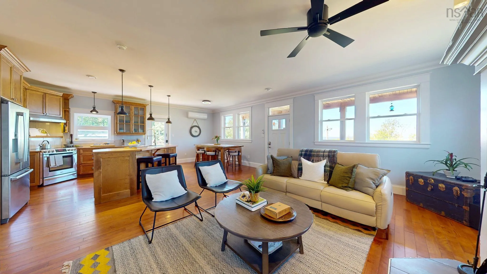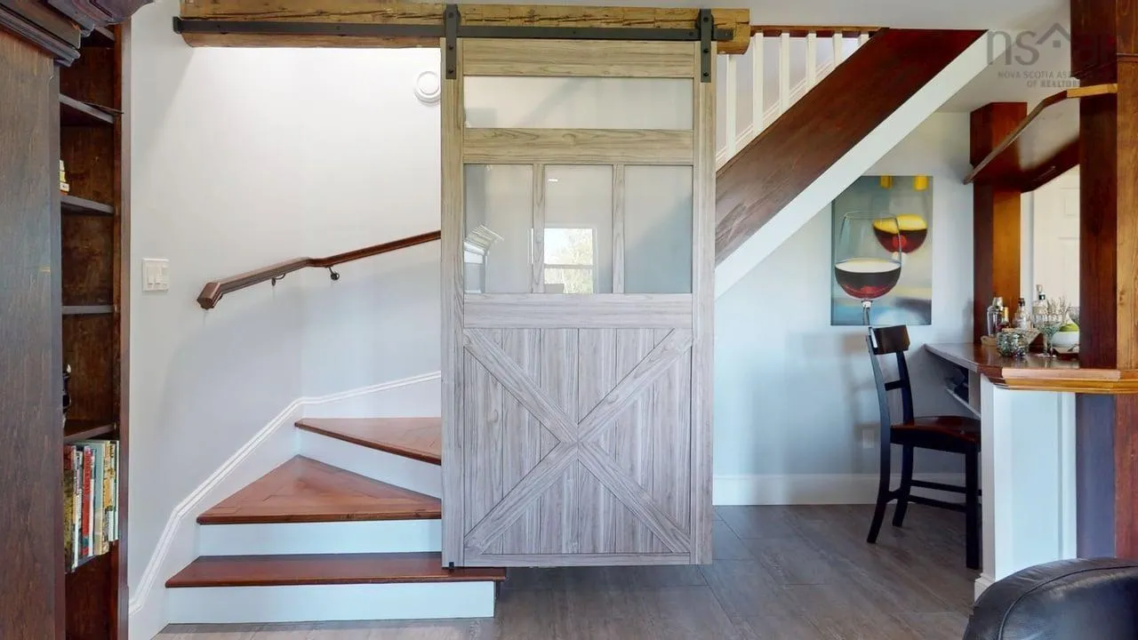 This 4 bed, 3 bath home is situated on the South Mountain with gorgeous views of Blomidon from multiple rooms inside and multiple decks/patios outside, and only 5kms to Wolfville. Inside, real hardwood floors, high ceilings, a wood and a propane fireplace define the the oversized living spaces. Freshly painted throughout, butler’s pantry, additional prep kitchen downstairs, and one of a kind details abound. You can entertain your guests on the open concept main floor and then they can retire to a private oasis downstairs. Your primary suite boasts a commanding balcony with “the view” as well as an ensuite that defines luxurious comfort. The outbuilding double and wired garage has a workshop and storage space in addition to the double carport. ICF foundation, electric in floor heat and heat pump, along with the metal roof and low maintenance vinyl siding make for a very efficient home.
