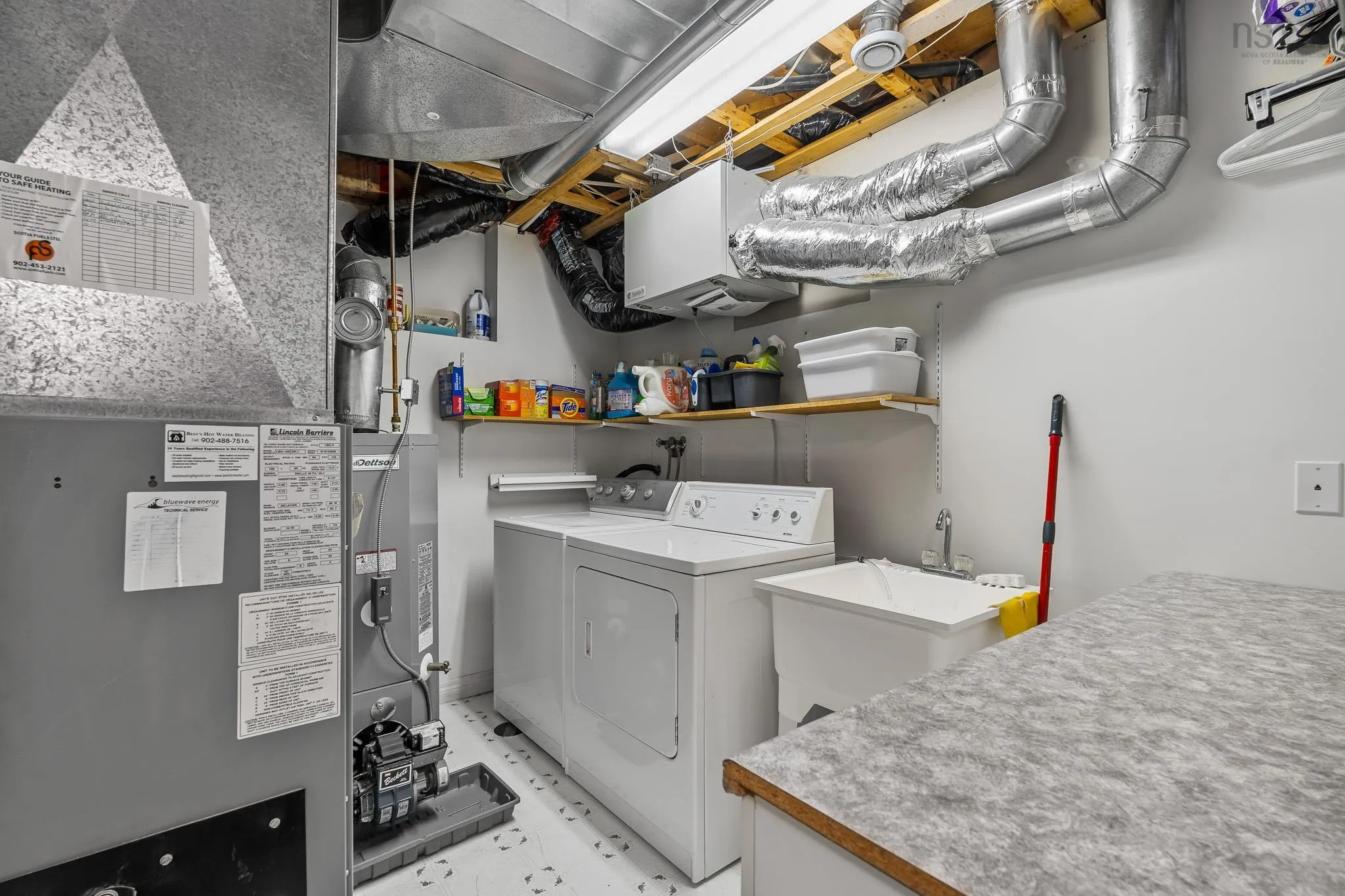 Welcome to this beautifully kept 2-story home, offering comfort, space, and convenience in one of the most desirable neighborhoods of Cole Harbour. The main floor features a bright eat-in kitchen with freshly repainted cabinets, ideal for everyday meals. A generous-sized living room with a heat pump ensures year-round comfort, and a convenient half bath with new toilet and fixtures is located just off the main hallway. Down the hall, an exterior door leads to a brand-new 10×10 deck—perfect for enjoying morning coffee or quiet evenings outdoors. Up the newly refinished staircase, you’ll find three well-appointed bedrooms. The spacious primary bedroom boasts new flooring, its own heat pump, and a large walk-in closet. The upgraded full bath includes a new toilet, sink, and flooring—designed for both style and function. The finished basement offers excellent bonus living space with a cozy rec room, another full bath with a new toilet, and tub and sink fixtures, a flexible work area ideal for a home office or hobby space, and a utility room which includes the washer & dryer. A walk-out provides easy access to the fully landscaped backyard. Additional features include a paved driveway, 10×12 garage, and 10×10 storage shed for all your storage needs. Location is key—this home is just minutes from the recreation centre, parks, transit, golf and essential amenities. Move-in ready and full of thoughtful updates, this home is a must-see—schedule your viewing today! A new 10×10 back deck has just been completed!