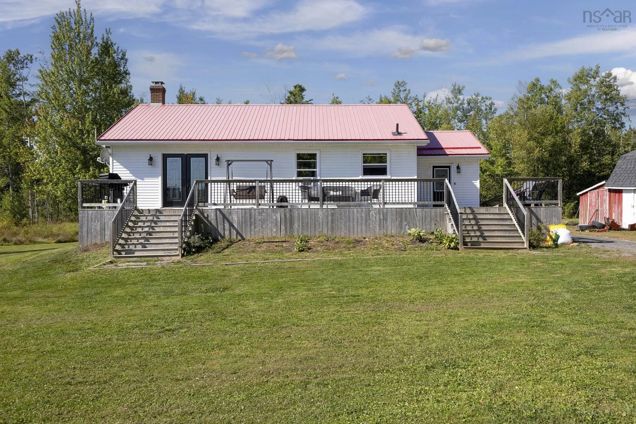 Escape to your own slice of paradise! This charming bungalow sits on 4.7 acres of nature, offering space, privacy, and endless possibilities. Enjoy your morning coffee or evening sunsets on the long front deck while surrounded by peaceful countryside views. Inside, the open-concept main floor features two bedrooms and a full bath, while the walk-out basement adds a rec room, den, laundry, and second bath—perfect for family life, hobbies, or entertaining. Accessible with a wheelchair ramp and complemented by three outbuildings ready for your personal touch, this home is full of character and potential. Cozy, welcoming, and brimming with opportunity, it’s the perfect place for a loving family to create lasting memories