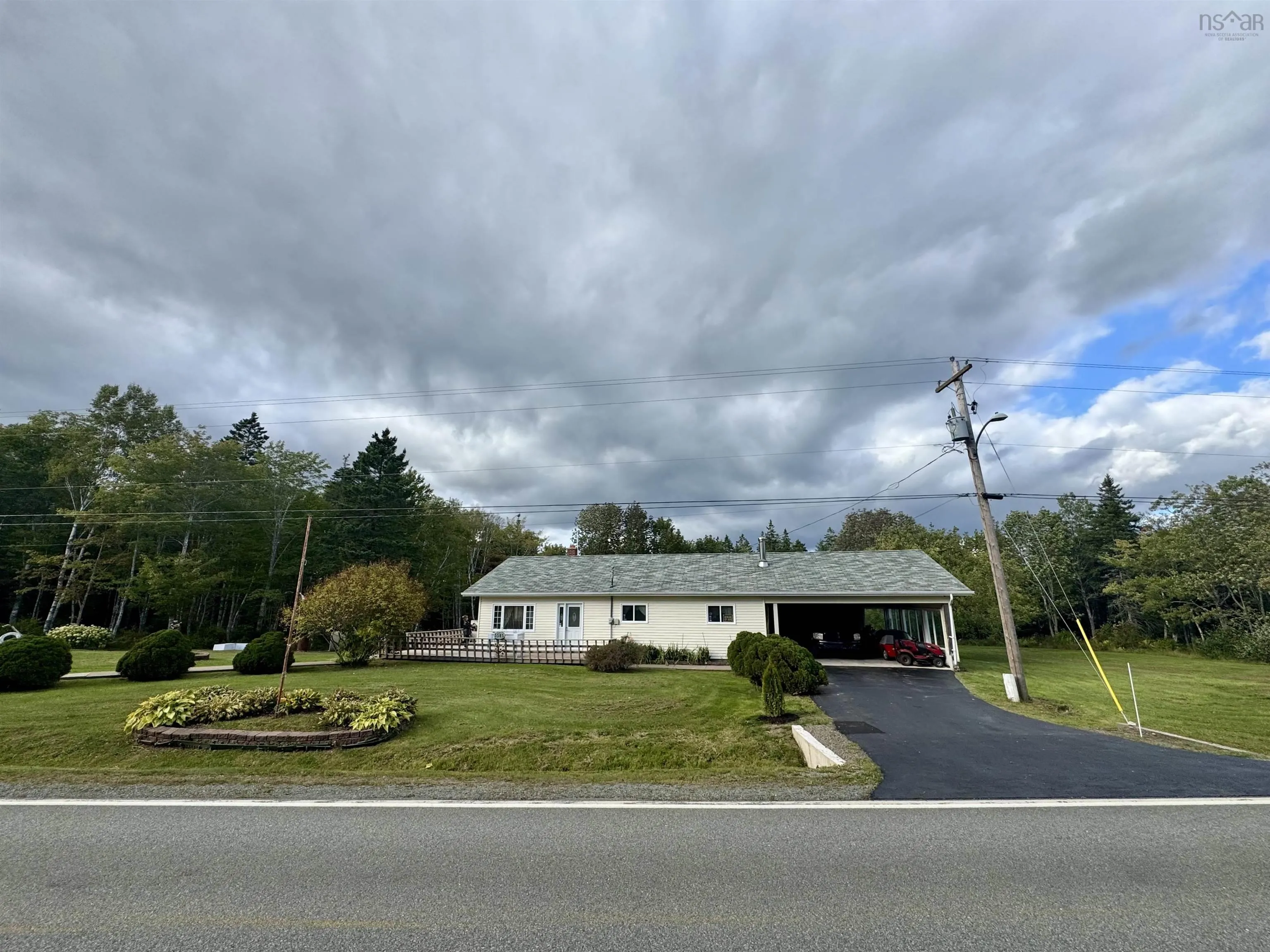 This 4 bedroom, 1 bath home is a great fit for a growing family or as a comfortable starter home. Set on a beautiful country lot, the yard offers plenty of space for pets, gardening, or children to play. The main level features all the essentials, including the bedrooms, bathroom, kitchen, and living areas. Vaulted ceilings with skylights brighten the kitchen and living room, creating a welcoming atmosphere. The basement offers a convenient walkout with a recreation room, ideal for family activities or extra space to relax. A forced air heating system with an added heat pump ensures year round comfort. Additional highlights include a paved driveway and a double carport. Located less than 10 minutes from Louisdale for everyday amenities, and just over 15 minutes from Port Hawkesbury for more shopping and services, this property blends country living with convenience.
