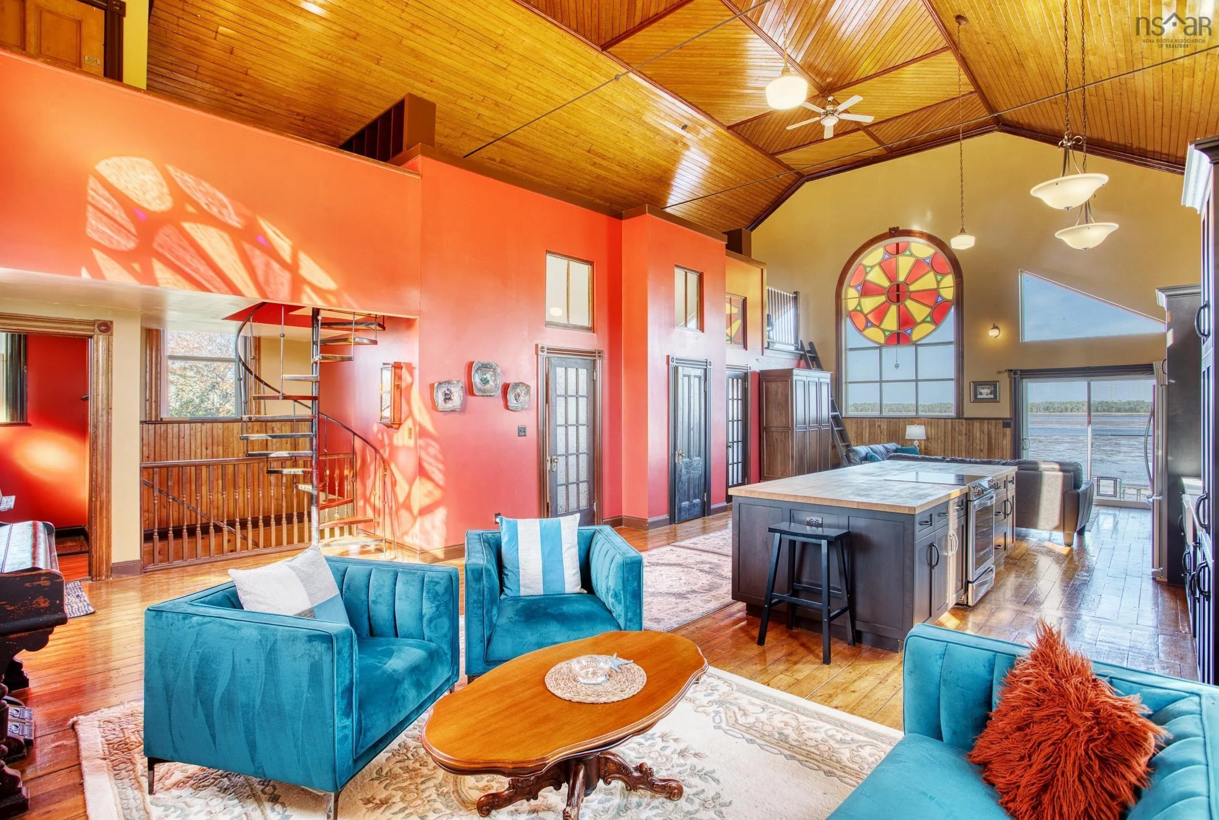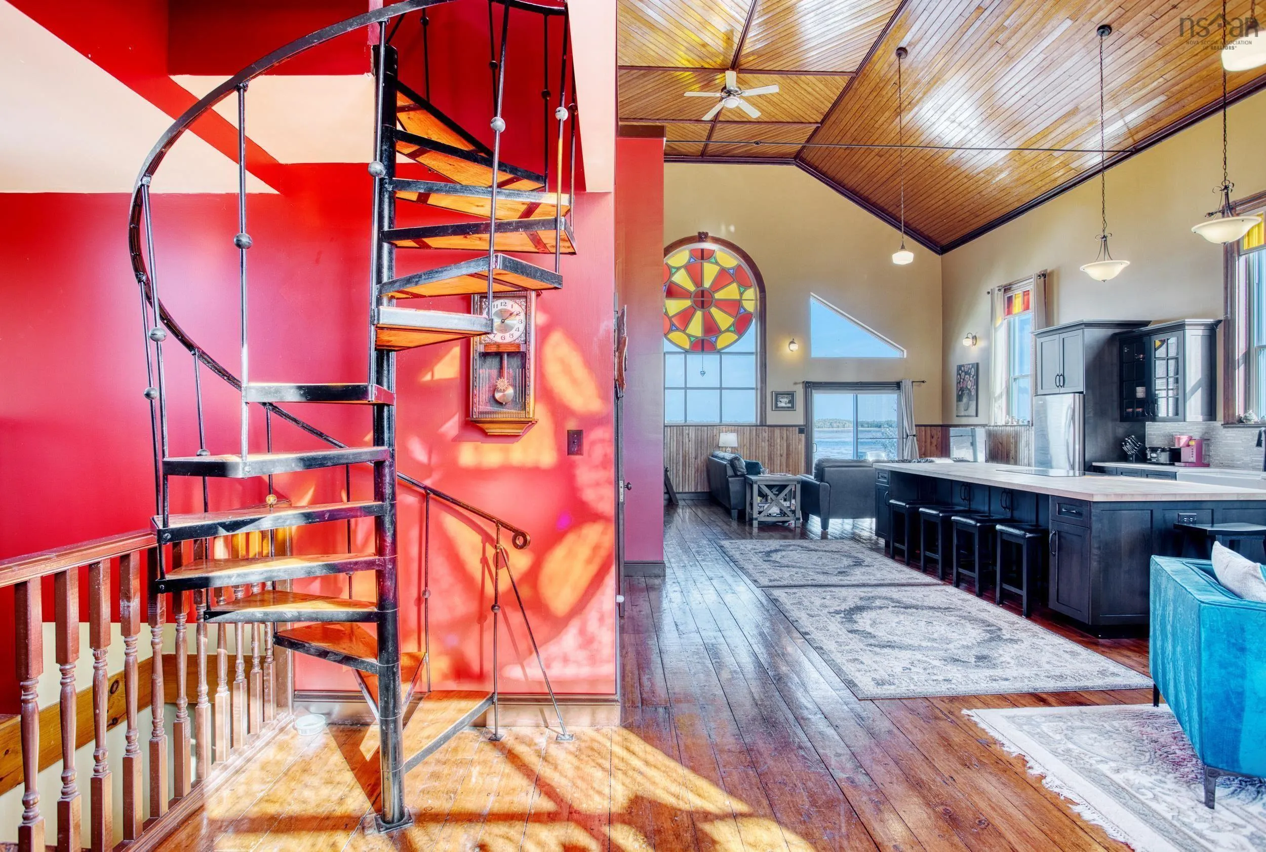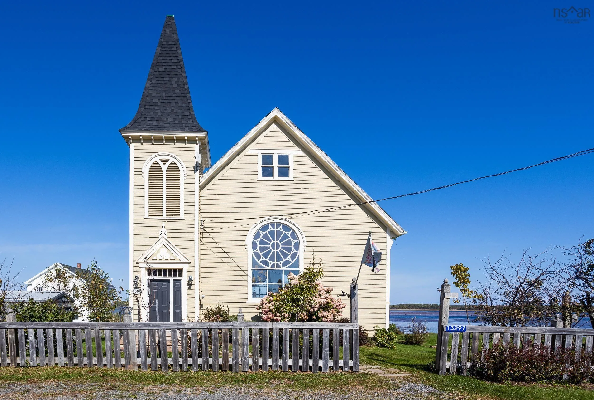 Discover a truly unique living experience in this magnificent church conversion that boasts breathtaking bay waterfront views. This one-of-a-kind property features a spacious two-bedroom layout with a charming bunk loft, perfect for family or guests. As you step inside, you’ll be welcomed into a large foyer and enter into an open-plan living area that seamlessly combines modern elegance with historic character. The main attraction is the impressive custom kitchen, complete with a massive island, ideal for entertaining and culinary adventures. Refinished softwood floors add warmth and charm to the space. The three-piece bathroom features a generously sized custom-tiled shower. The defined living areas are filled with natural light, thanks to the large stained glass windows at either end, that highlight the floor to the peak vaulted ceilings. The basement currently accommodates a combined laundry and storage area, a den or office, and a utility room. All areas are defined by stud partitions and the walls are spray foamed and ready for finishing. One of the highlights of this property is the tiered deck accessible via patio doors, where you can relax and enjoy the mesmerizing ocean bay views. Multiple parking spaces are available, making this property an excellent short-term rental opportunity. Conveniently located near Fox Harbour golf course and the ski slopes of Wentworth, this church conversion is a slice of paradise for those seeking a unique blend of history, luxury, and coastal living. Don’t miss the chance to make this exceptional property your own and wake up to the beauty of the bay every day.
