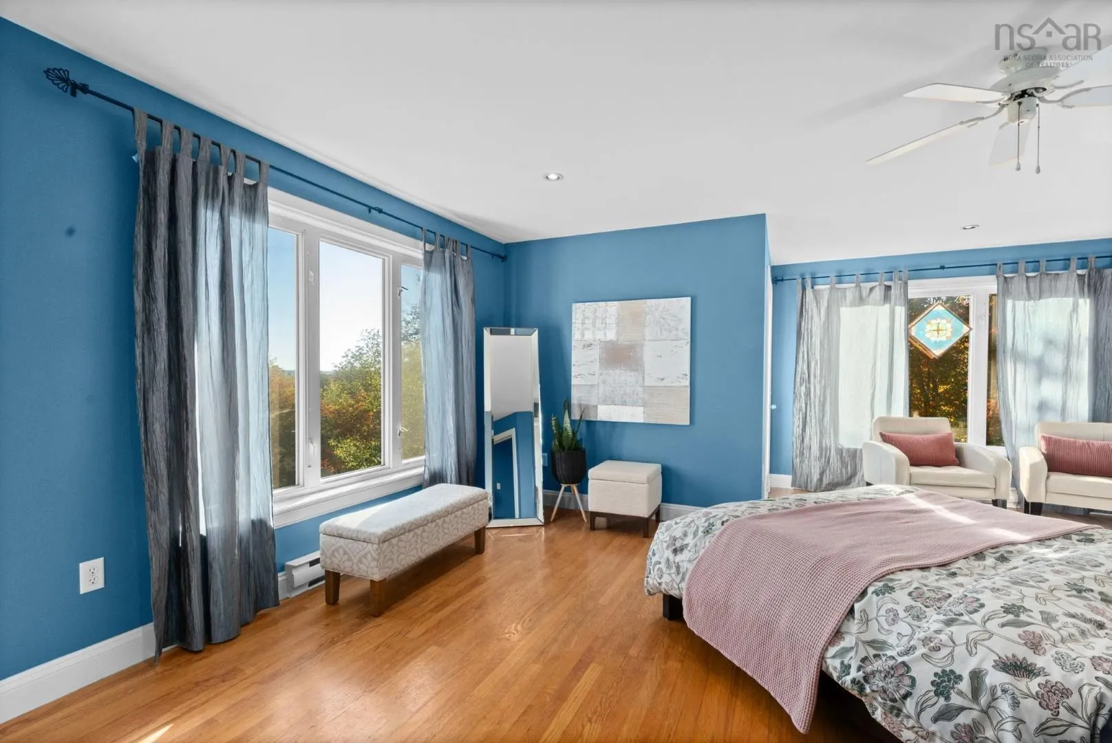 Set quietly on a large, tree-canopied lot in the heart of Bedford, 15 Merrill Drive feels worlds away from the city – yet it’s just minutes from everything. This re-imagined raised bungalow blends timeless character with thoughtful design, creating a one-of-a-kind home that’s both flexible and inspiring. The welcoming entry opens to a bright main living area where natural light flows across hardwood floors and a classic fireplace anchors the room. From here, glimpses of the Bedford Basin remind you that this is no ordinary property. Two well-proportioned bedrooms on the main level – including one tucked privately to the side with its own half bath – offer versatility for family or guests. A beautifully updated full bath completes the wing. At the back, the home opens into an exceptional addition – a warm, open-concept space that brings everyone together. The dining area sits beneath a subtly dropped ceiling with accent lighting, leading to a stunning kitchen with shaker cabinetry, granite counters, subway tile backsplash, and a walk-in pantry. A cozy reading nook overlooks mature trees and the private yard beyond – a perfect retreat for morning coffee or quiet reflection. Upstairs, the entire top floor is devoted to a breathtaking primary suite. Sunlight pours through windows on all sides, capturing Basin views and a sense of calm that’s hard to describe. The suite features a walk-in closet, spa-inspired ensuite with double vanity, soaker tub, and walk-in shower, plus a charming widow’s walk – an intimate spot to pause and take in the day. The lower level continues the theme of flexibility with a bright rec room, fourth bedroom, office, full bath, laundry, and built-in garage. Step outside and you’re enveloped in privacy – a spacious deck, side yard, and mature trees creating a peaceful urban oasis. 15 Merrill Drive is a home that stands apart – a blend of comfort, character, and lifestyle that you won’t find anywhere else.