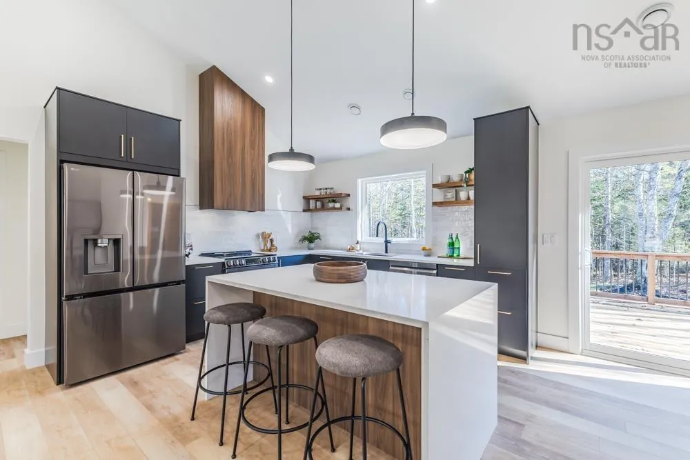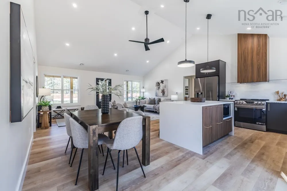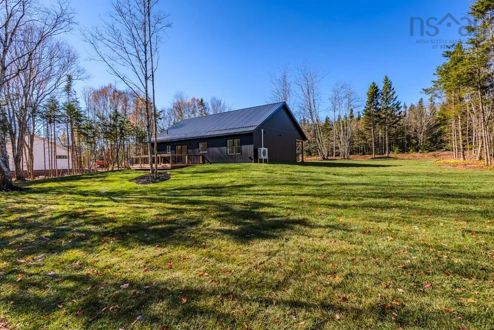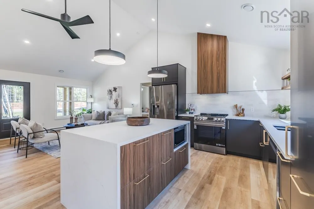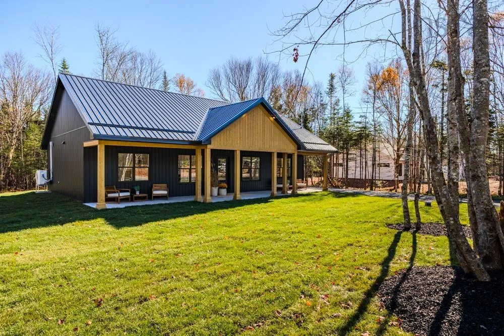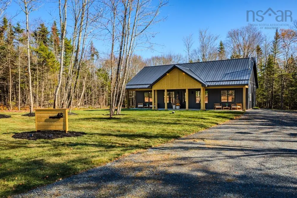 Welcome to 48 Withers Place, where bold design meets modern comfort. This brand-new 3-bedroom, 2-bath home was built for those looking to downsize without compromising on luxury or style. Every detail has been thoughtfully curated to create a space that feels sophisticated, warm, and undeniably sexy. Step inside to soaring vaulted ceilings & an open-concept main living area that’s flooded with natural light. The kitchen is a true showpiece — featuring a large island with waterfall quartz countertops, walnut & black cabinetry with brushed gold pulls, a striking rangehood with hand-wave controls, and upgraded LG black stainless appliances. A generous pantry & upgraded sink and faucet complete the look. The primary suite is pure indulgence with a large custom walk-in closet, a dedicated makeup area, & a spa-inspired ensuite featuring a custom tiled shower in a stunning natural shade variation with a separate hand sprayer. Throughout the home, you’ll find extensive pot lighting, motion sensor lights in closets, black hardware, waterproof laminate flooring, and an upgraded trim package. Comfort is built in with a fully ducted heat & air conditioning system, HRV, and Generac-ready automatic transfer switch for generator backup. Outside, the “True Black” vinyl board-and-batten siding with real Cape Cod wood accents & upgraded black windows make a bold first impression. The metal roof package with snow rail adds both style & longevity. Enjoy a large back deck overlooking a beautifully treed lot with endless walking & recreational trails just beyond your backyard. The landscaped and fully sodded yard is framed by mature hardwoods & mulch accents for easy upkeep. Relax year-round on the huge covered front patio, or explore nearby amenities — just 4 mins to Masstown Market, pharmacy, butcher, restaurants, & Highway 104. Only 15 mins to Wentworth ski & bike trails, this location offers the best of rural tranquility & modern convenience.