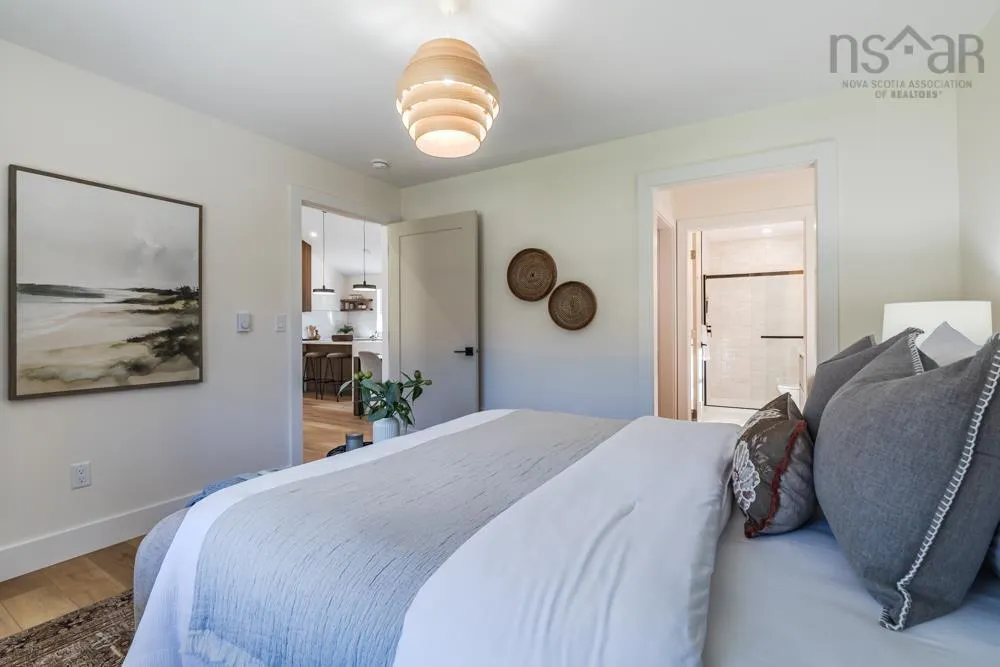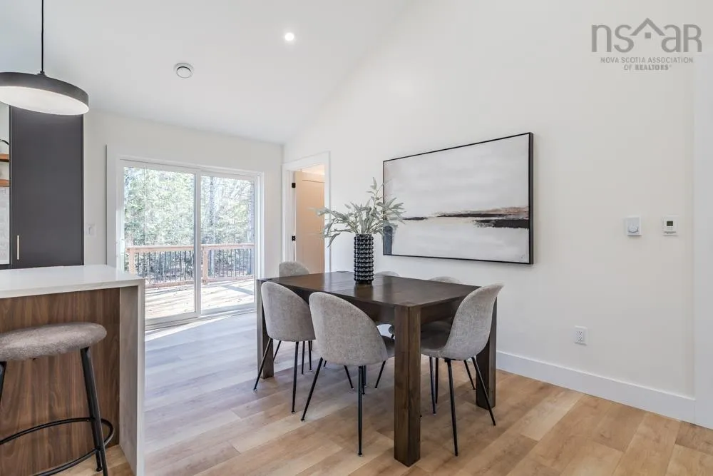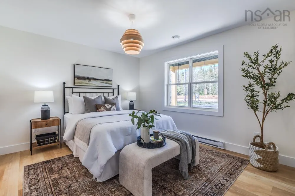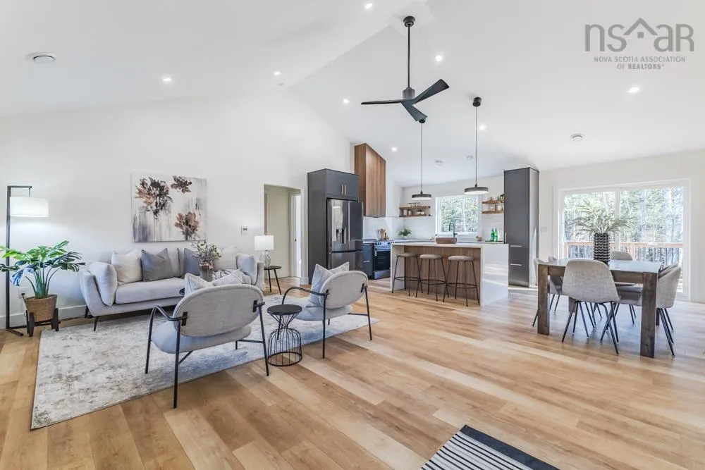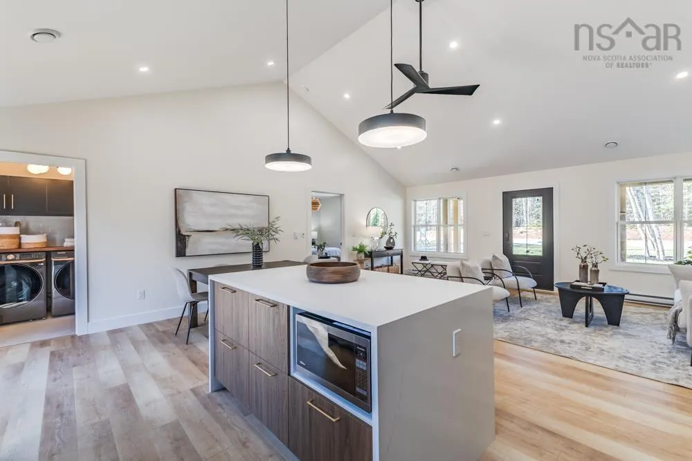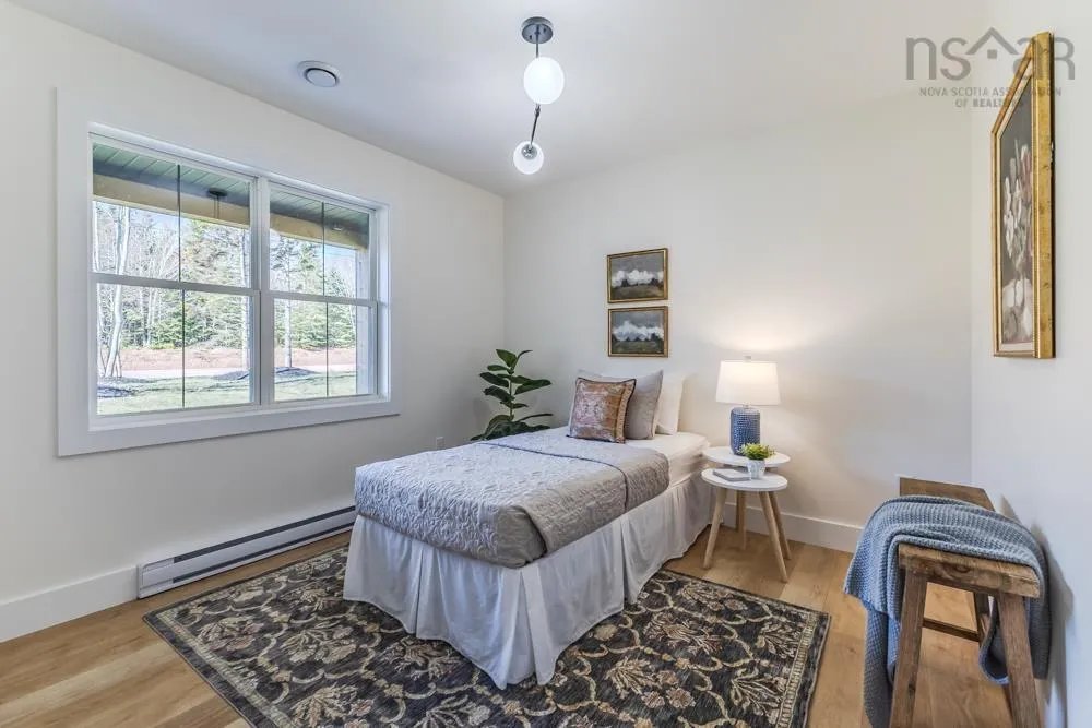 Welcome to 48 Withers Place, where bold design meets modern comfort. This brand-new 3-bedroom, 2-bath home was built for those looking to downsize without compromising on luxury or style. Every detail has been thoughtfully curated to create a space that feels sophisticated, warm, and undeniably sexy. Step inside to soaring vaulted ceilings & an open-concept main living area that’s flooded with natural light. The kitchen is a true showpiece — featuring a large island with waterfall quartz countertops, walnut & black cabinetry with brushed gold pulls, a striking rangehood with hand-wave controls, and upgraded LG black stainless appliances. A generous pantry & upgraded sink and faucet complete the look. The primary suite is pure indulgence with a large custom walk-in closet, a dedicated makeup area, & a spa-inspired ensuite featuring a custom tiled shower in a stunning natural shade variation with a separate hand sprayer. Throughout the home, you’ll find extensive pot lighting, motion sensor lights in closets, black hardware, waterproof laminate flooring, and an upgraded trim package. Comfort is built in with a fully ducted heat & air conditioning system, HRV, and Generac-ready automatic transfer switch for generator backup. Outside, the “True Black” vinyl board-and-batten siding with real Cape Cod wood accents & upgraded black windows make a bold first impression. The metal roof package with snow rail adds both style & longevity. Enjoy a large back deck overlooking a beautifully treed lot with endless walking & recreational trails just beyond your backyard. The landscaped and fully sodded yard is framed by mature hardwoods & mulch accents for easy upkeep. Relax year-round on the huge covered front patio, or explore nearby amenities — just 4 mins to Masstown Market, pharmacy, butcher, restaurants, & Highway 104. Only 15 mins to Wentworth ski & bike trails, this location offers the best of rural tranquility & modern convenience.