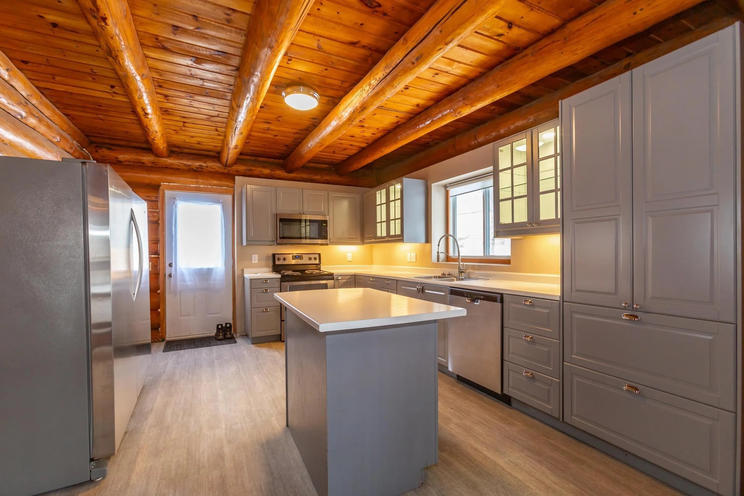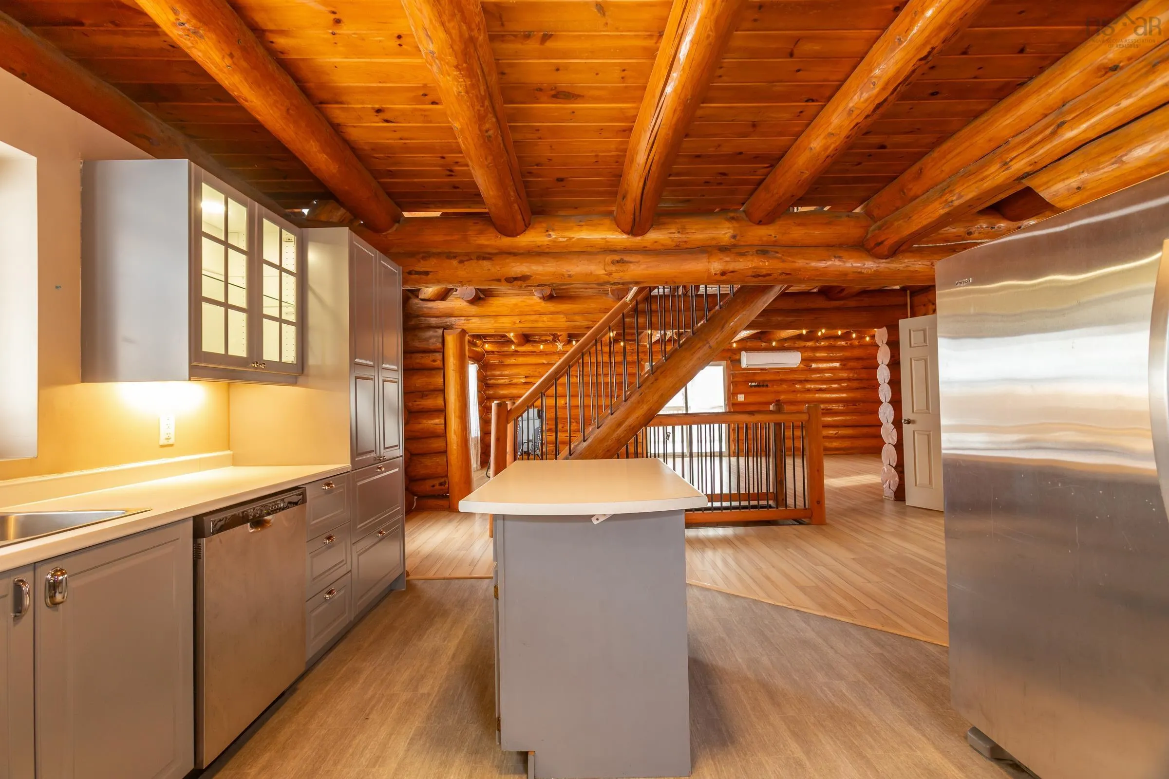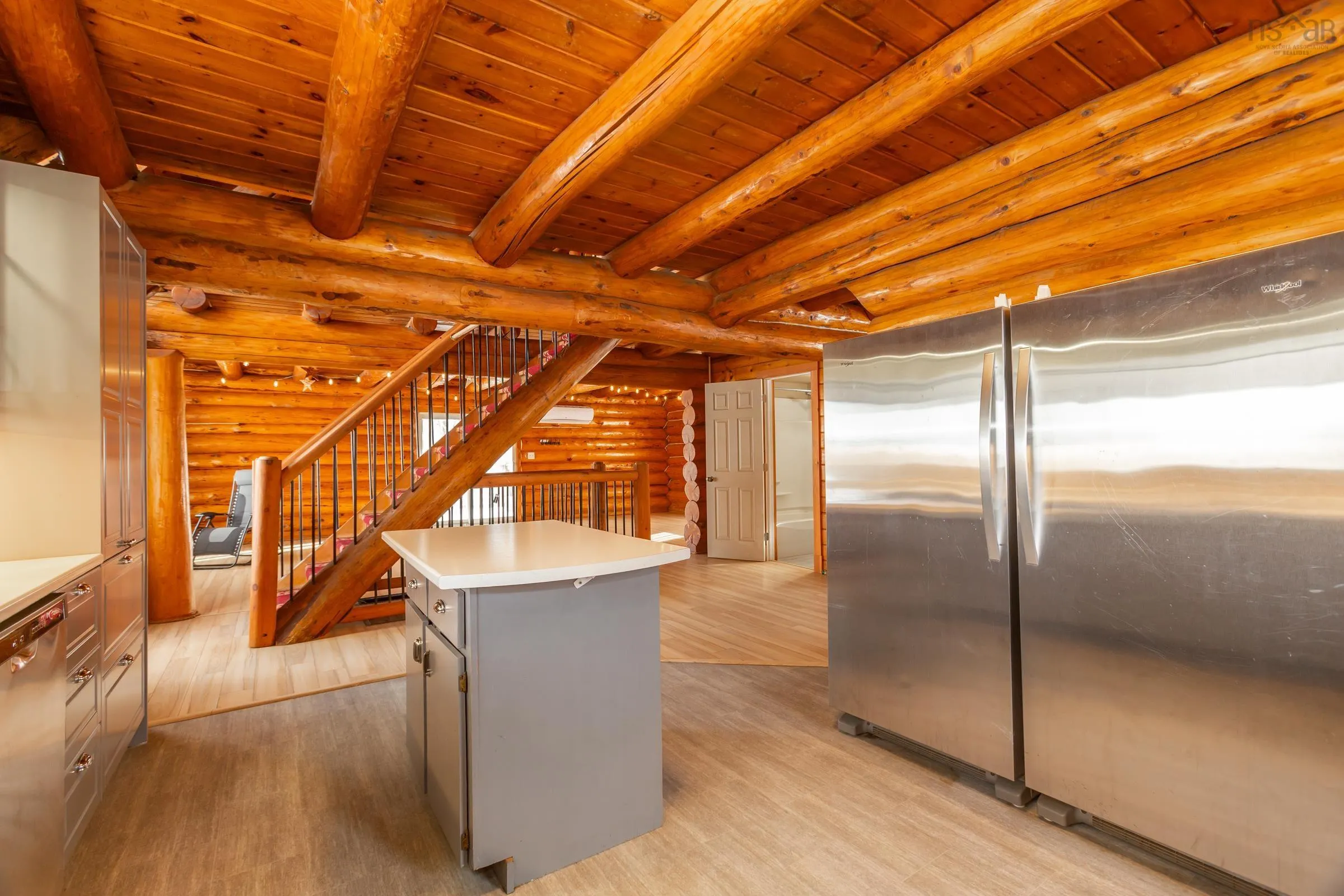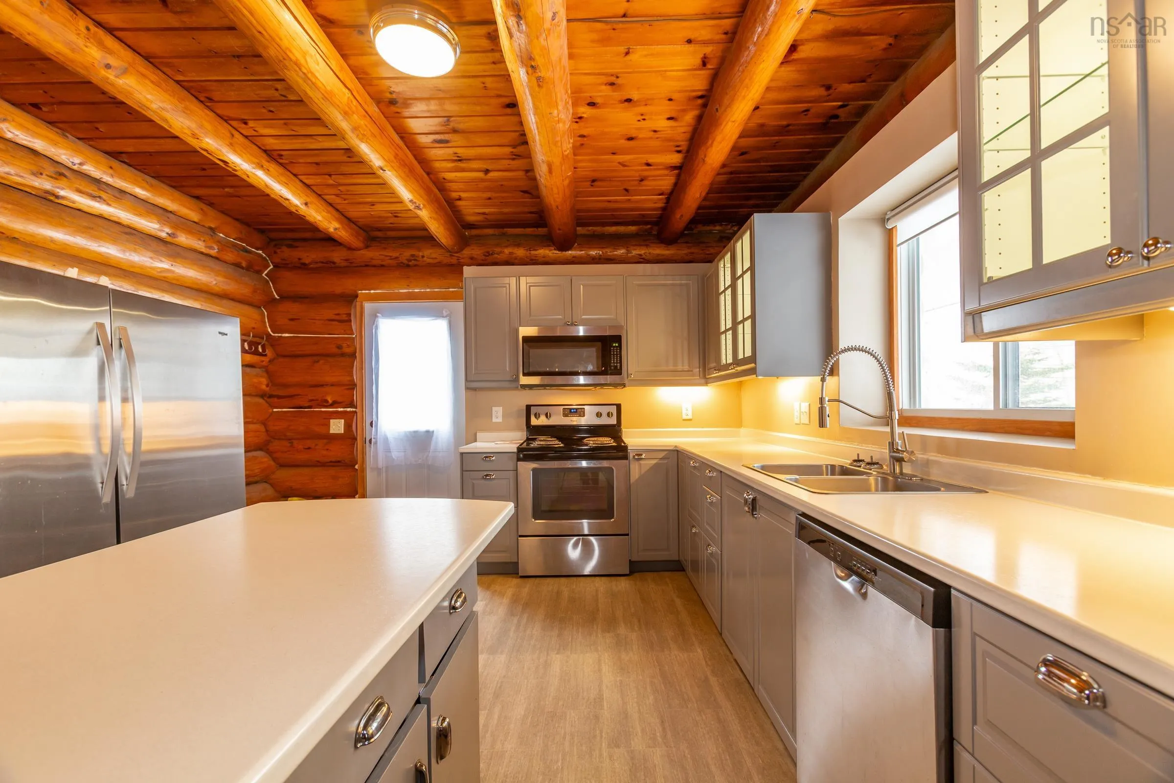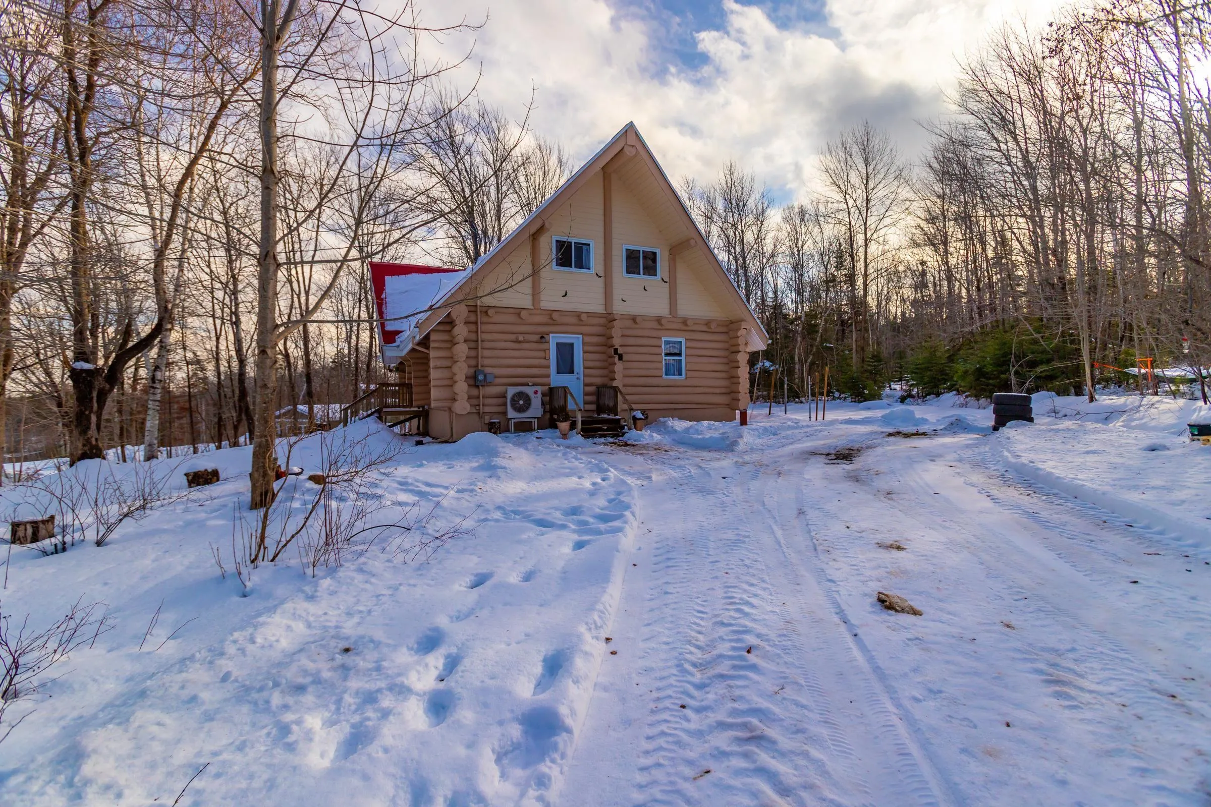 Looking for the real thing? This beautifully updated 3-bedroom, 2-bath authentic log home offers 2,000 sq.ft. of living space plus a full unfinished basement with rough in for a third bath, ideal for a rec room or extra bedroom. Situated on a spacious 28,000 sq.ft. lot just across from Lake George Beach and Boat Launch. Recent upgrades include a modern new kitchen with quality appliances, new vinyl and laminate flooring, high-end washer and dryer, new doors and windows, over and under decks, and upgraded plumbing and electrical with 220 panels. Efficient heating is provided by two heat pumps with electric baseboard backup. Outdoor lovers will appreciate the hidden hiking trail starting in the backyard and proximity to Aylesford Lake Park, only 2km away. High-speed fibre optic internet is available, with Greenwood and Kentville just 20-25 minutes away. Nestled among a friendly mix of cottages and year-round homes, this property perfectly blends rustic charm with modern convenience-ready for you to move in and enjoy. See feature sheet.