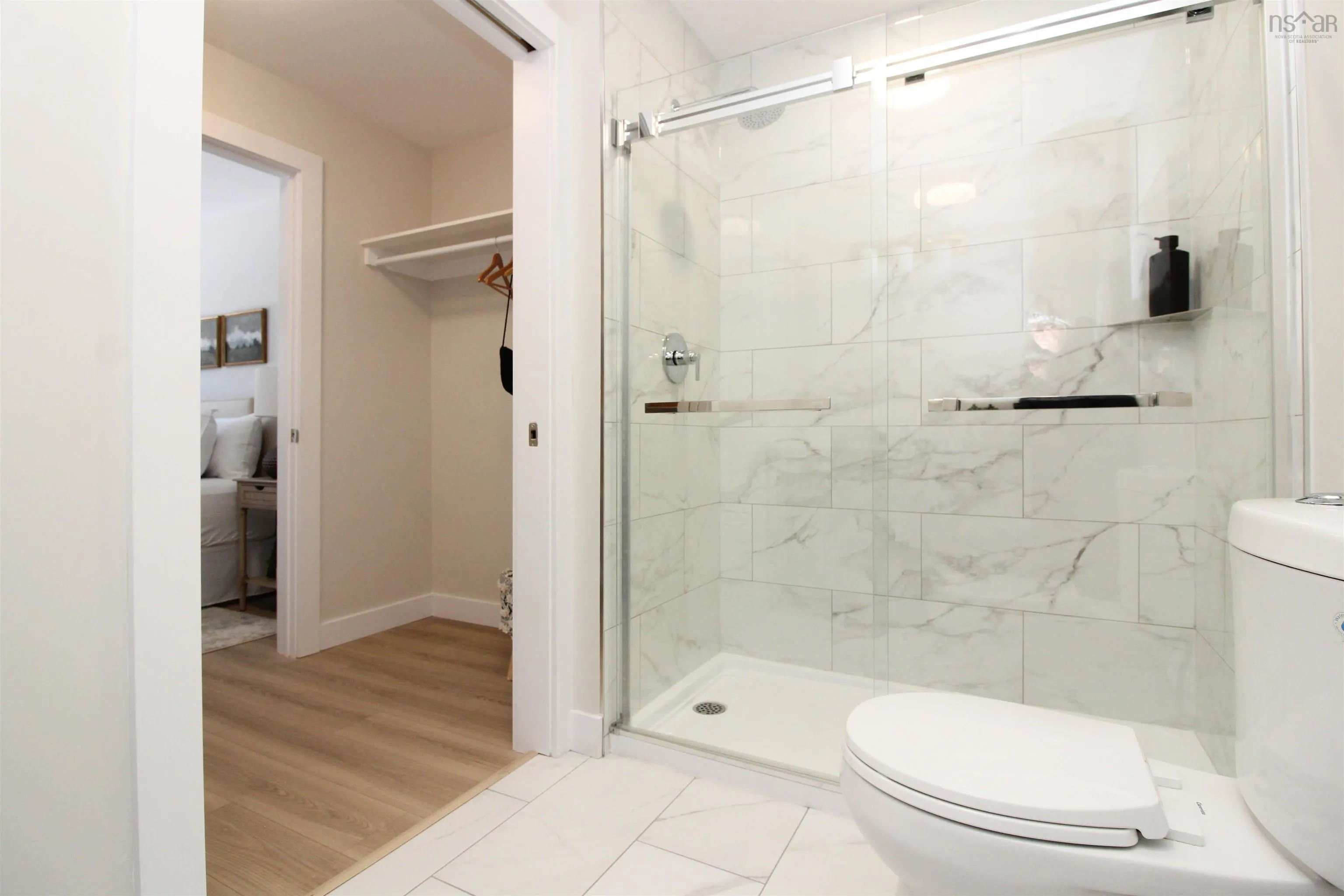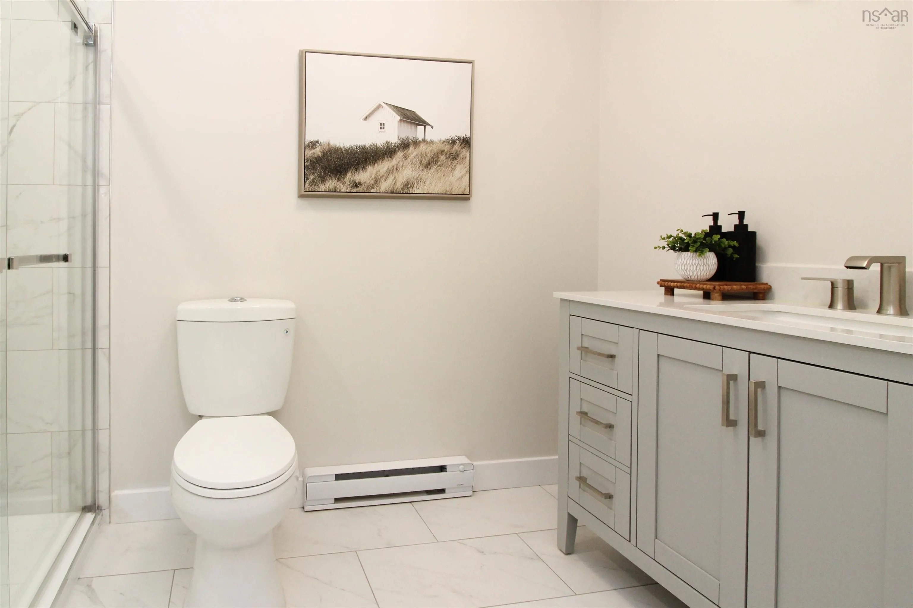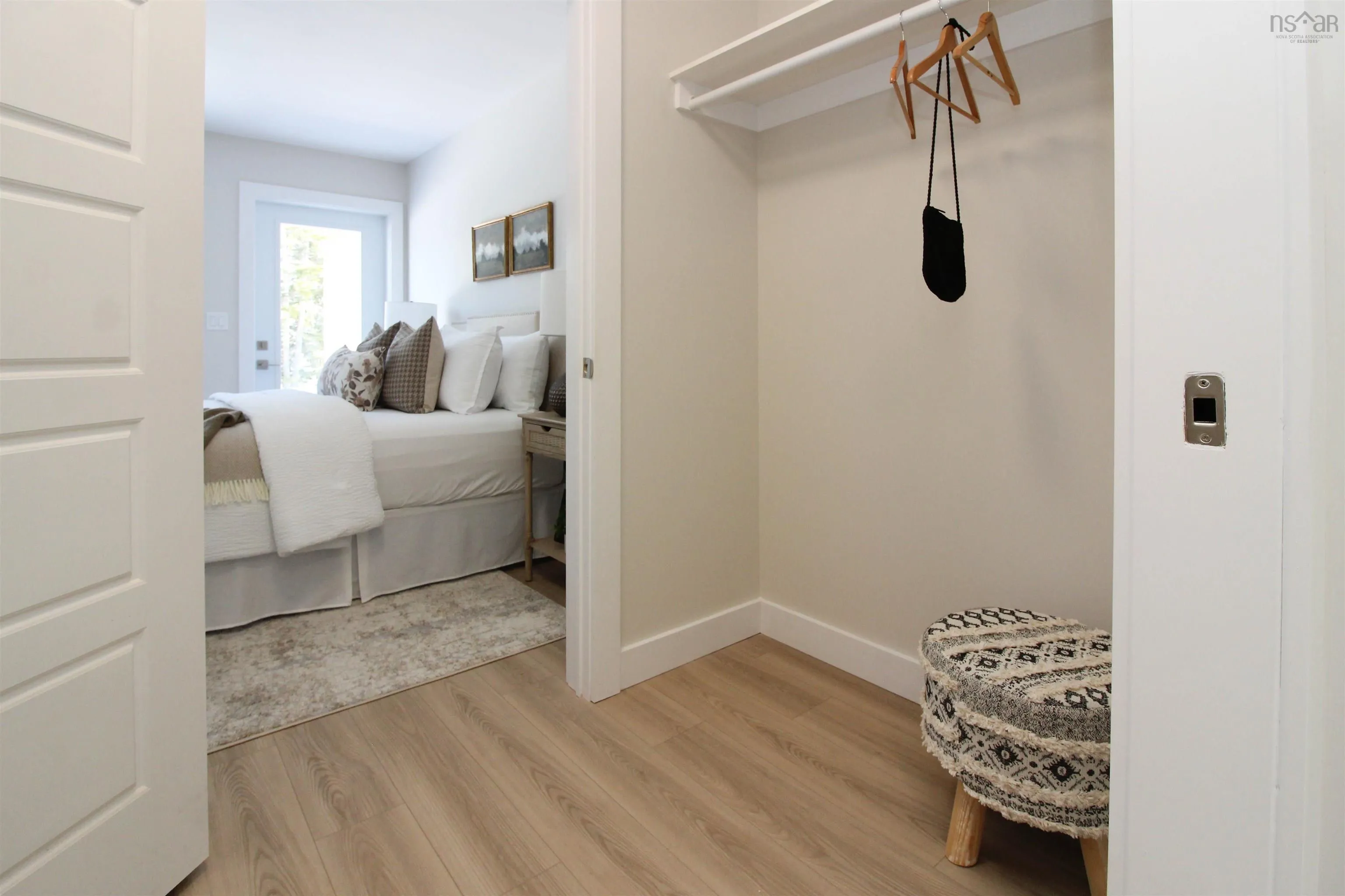 This newly built 3-bedroom, slab-on-grade home with an attached single-car garage is filled with natural light—the windows truly make the home, creating an airy, welcoming feel throughout. The U-shaped kitchen features Quartz countertops, white cabinetry, built-in recycling, a modern Lazy Susan, and a versatile frosted-panel closet ideal for use as a pantry or coat closet. The peninsula offers seating for four, perfect for casual dining or entertaining. A nearby laundry/utility room provides flexible space to adapt to your lifestyle. Comfort is ensured with baseboard electric heat and a ductless heat pump. The primary bedroom includes a walk-through closet and a private ensuite with a glass and tiled shower, plus a garden door leading to a backyard patio with privacy screening and a treed backdrop. Located just minutes from the town centre, with a school and skating rink nearby, this home offers quiet country living with town convenience—ideal for empty nesters, retirees, or a small family.